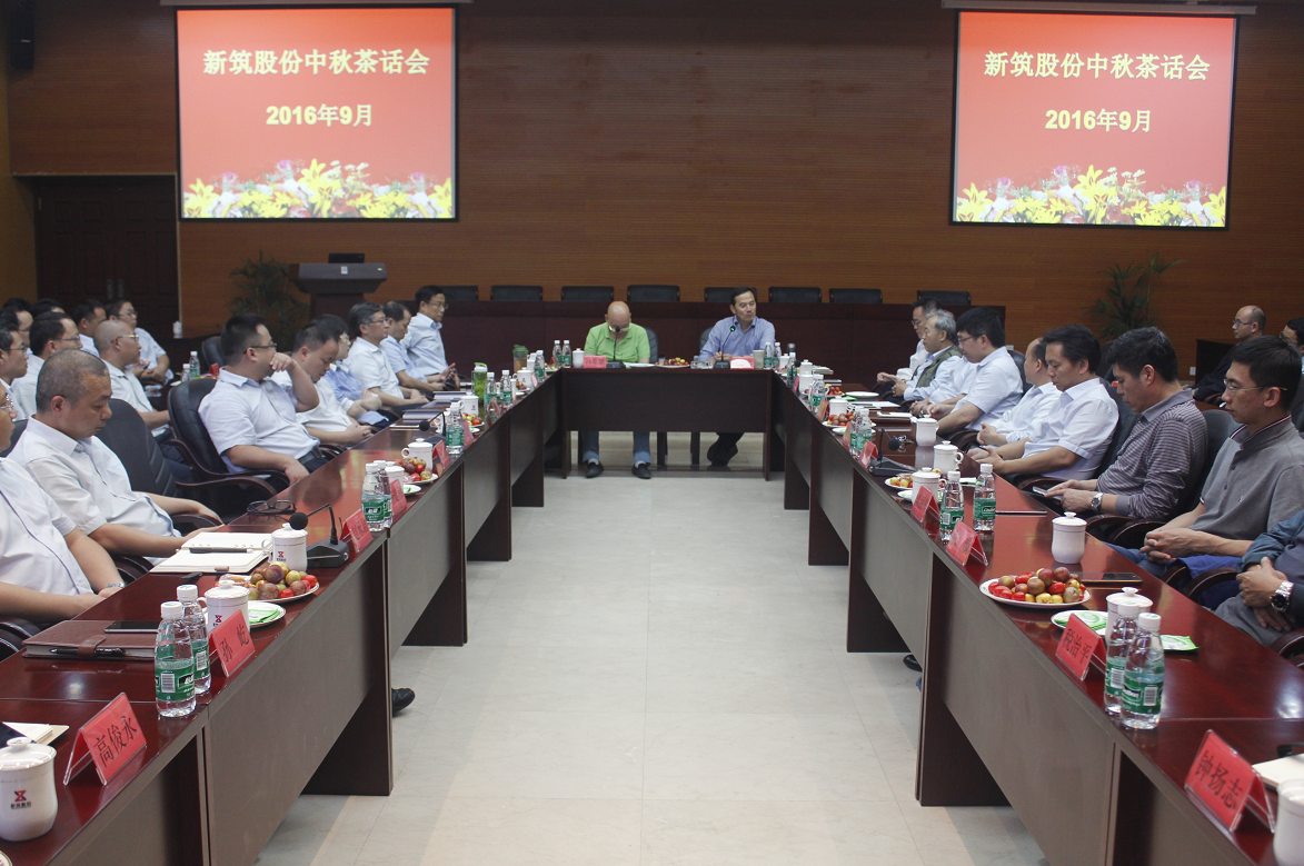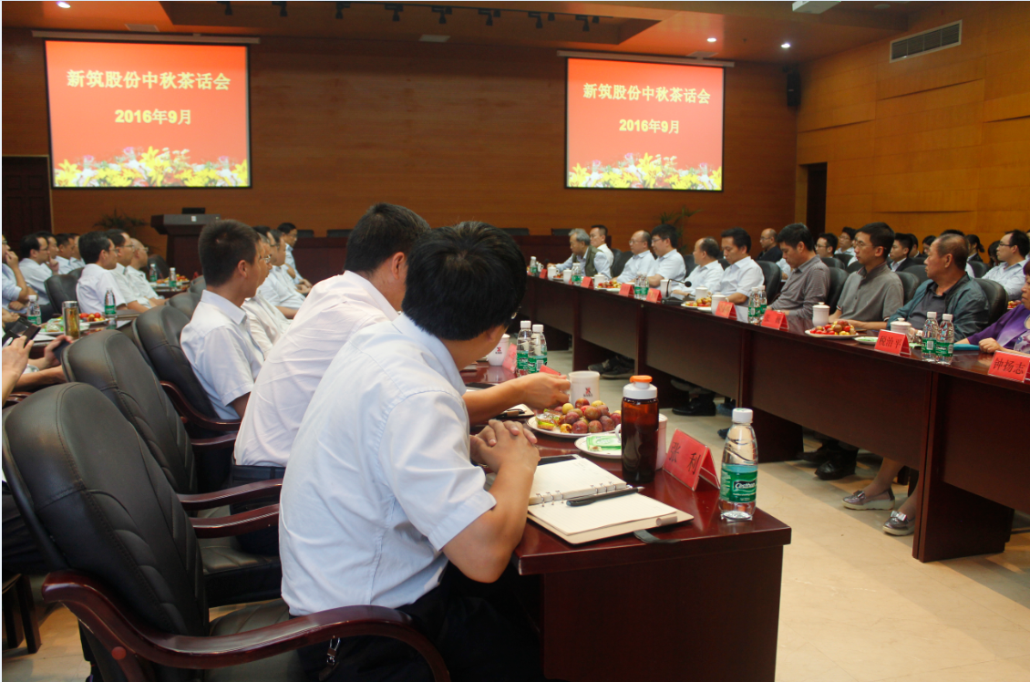 金风送爽,中秋月圆。中秋佳节来临之际,9月14日下午,新筑股份2016中秋茶话会在223会议室顺利召开,公司高层领导与各单位骨干人员共计100余人欢聚一堂,共庆佳节,共叙友情,共谋发展。公司董事长黄志明、总裁冯克敏和相关公司领导出席了此次茶话会议,会议由总裁冯克敏主持。