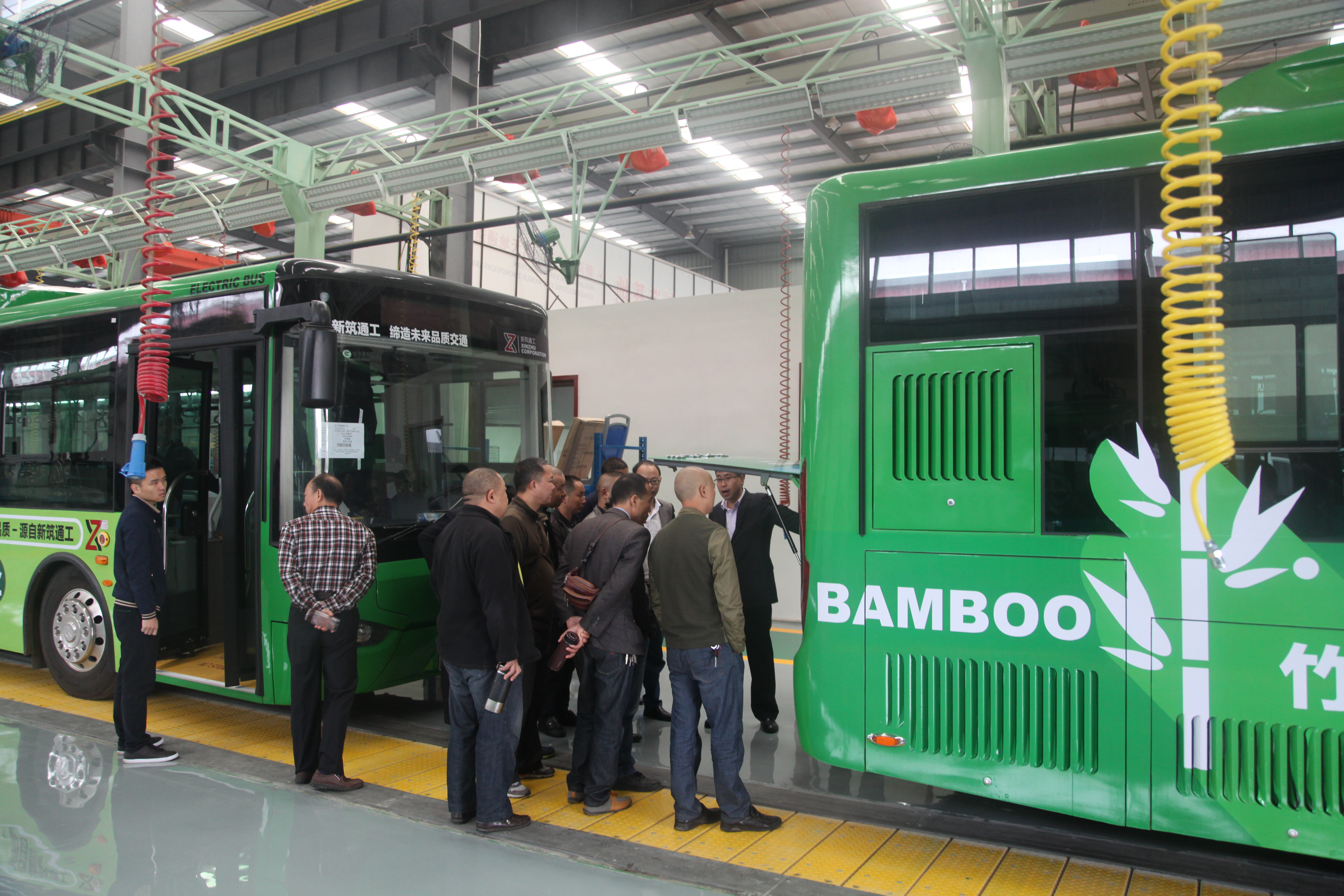 10月18日,中国西部第一条纯电动在线快充公交示范线即将在雅安7号线开通!新筑通工自主研发制造的六辆已获取正式“身份证”的纯电动公交车已换上新装,整装待发!昨日,雅安蜀通公司领导、公交车驾驶员等一行走进新筑通工公司,见到了即将与大家见面的六辆纯电动公交,车辆别具一格的外观,舒适的内部构造,让在场的驾驶员们爱不释手!
