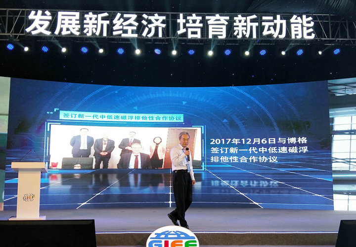 在经济成果推介环节,作为城市轨道交通新制式的探路者,公司技术总监胡基士代表公司作精彩发言。胡基士向大会详细介绍了公司成立以来所取得的技术成就、产品应用情况及内嵌式中低速磁浮的优势、特点。
