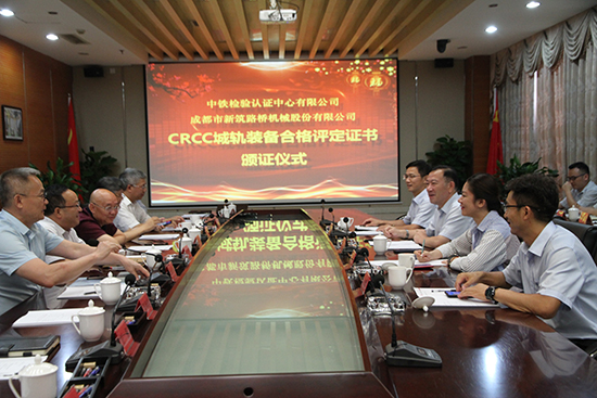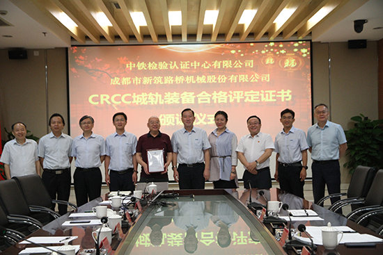颁证仪式上,CRCC执行董事、主任刘越先生向公司副董事长冯克敏先生颁发了新筑股份自主研发的有轨电车CRCC“城轨装备合格评定证书”,这是CRCC在国内颁发的首张有轨电车合格评定证书。