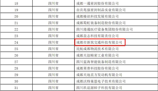 为深入贯彻习近平总书记关于“培育一批‘专精特新’中小企业”的重要指示精神,工业和信息化部于近日完成了第五批专精特新“小巨人”企业培育和第二批专精特新“小巨人”企业复核工作,四川省经济和信息化厅于7月14日对我省通过审核的企业名单予以公示,成都市新筑交通科技有限公司(以下简称“新筑交科”)成功入选第五批国家级专精特新“小巨人”企业名单。