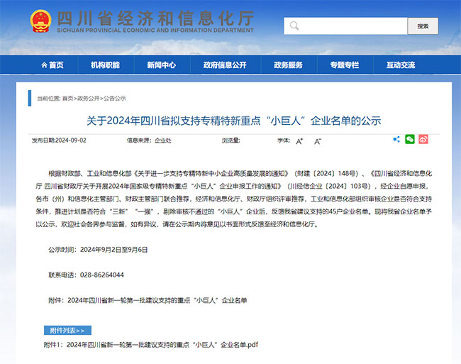 9月2日,2024年四川省新一轮第一批建议支持的重点“小巨人”企业公示名单新鲜出炉,新筑交科继2023年获专精特新“小巨人”企业后,时隔1年,凭借在技术创新、市场竞争力和行业影响力等方面的卓越表现,从众多参评企业中脱颖而出,再获国家级的高度认可和肯定。