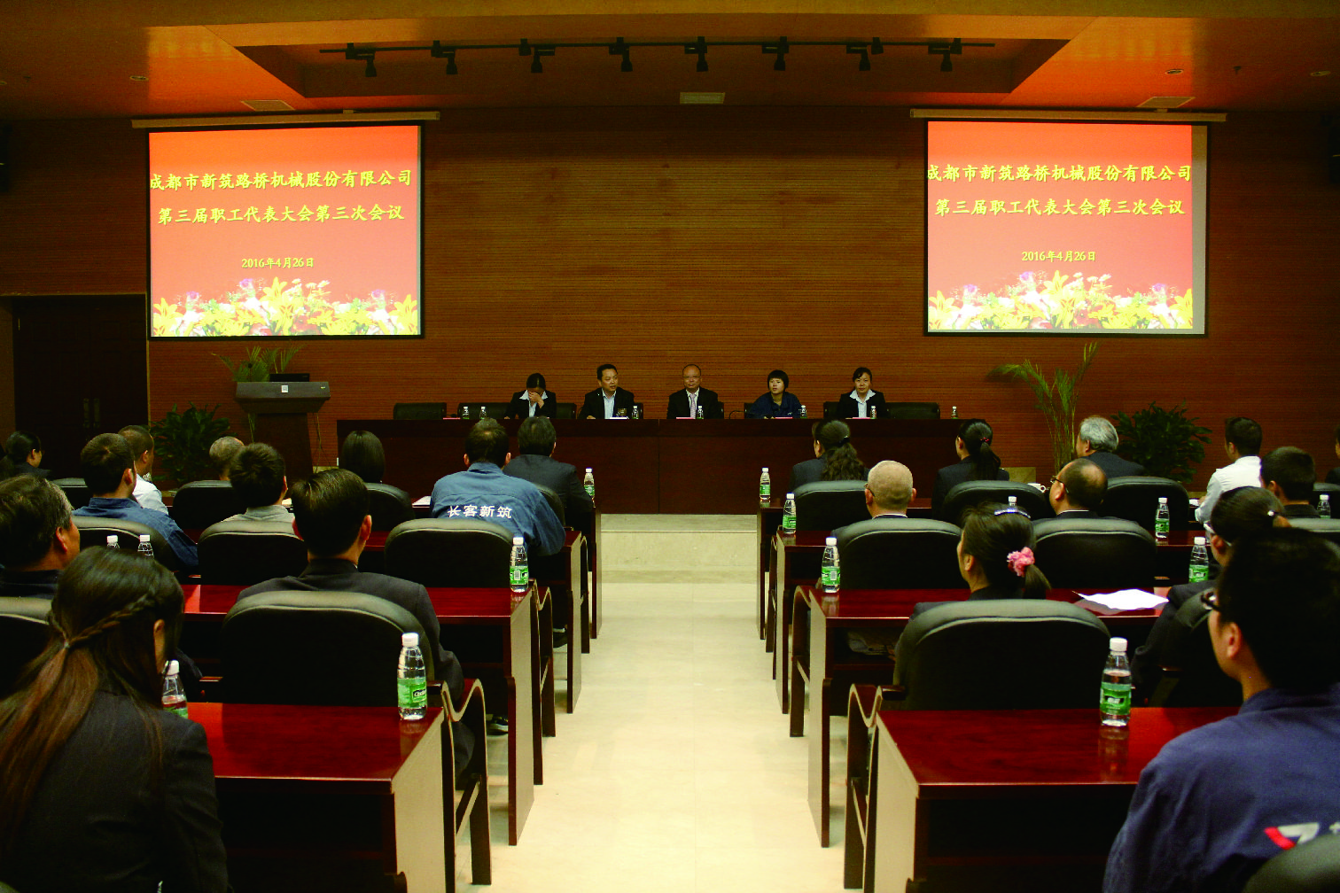 4月26日上午,新筑股份公司第三届职工代表大会第三次会议在223会议室隆重召开,公司副总裁衡福明出席了大会。大会由公司工会主席张宏鹰主持。大会首先由运营管理部人力资源副总监宋长胜宣讲了2016年公司《工资集体协议》草案、公司《劳动纪律管理制度(修订)》草案、公司《工资支付管理办法(修订)》草案,经与会代表逐个认真审议后全票通过了以上制度(协议)草案。会上,公司工会副主席毛文玉同志做了员工互助基金工作报告,向职工代表通报了2015—2016年度员工互助基金收支情况;公司工会主席张宏鹰同志宣读了《关于开展五·一慰问劳模的通知》,并现场慰问公司全体劳模;公司工会主席张宏鹰同志在会上总结了2015年度公司工会工作,并号召全体参会代表广泛宣传本次会议的内容和精神,按照公司要求提升专业素质,努力完成各自工作任务,确保公司年度经营管理目标的实现最后,公司副总裁衡福明先生做了重要讲话,他首先向全体职工代表转达了公司董事长的关怀,并向大家说明了企业的发展方向,希望全体职工代表在公司转型升级过程中认真履职,做好本职工作,带动广大职工群众为公司更好地发展再立新功。